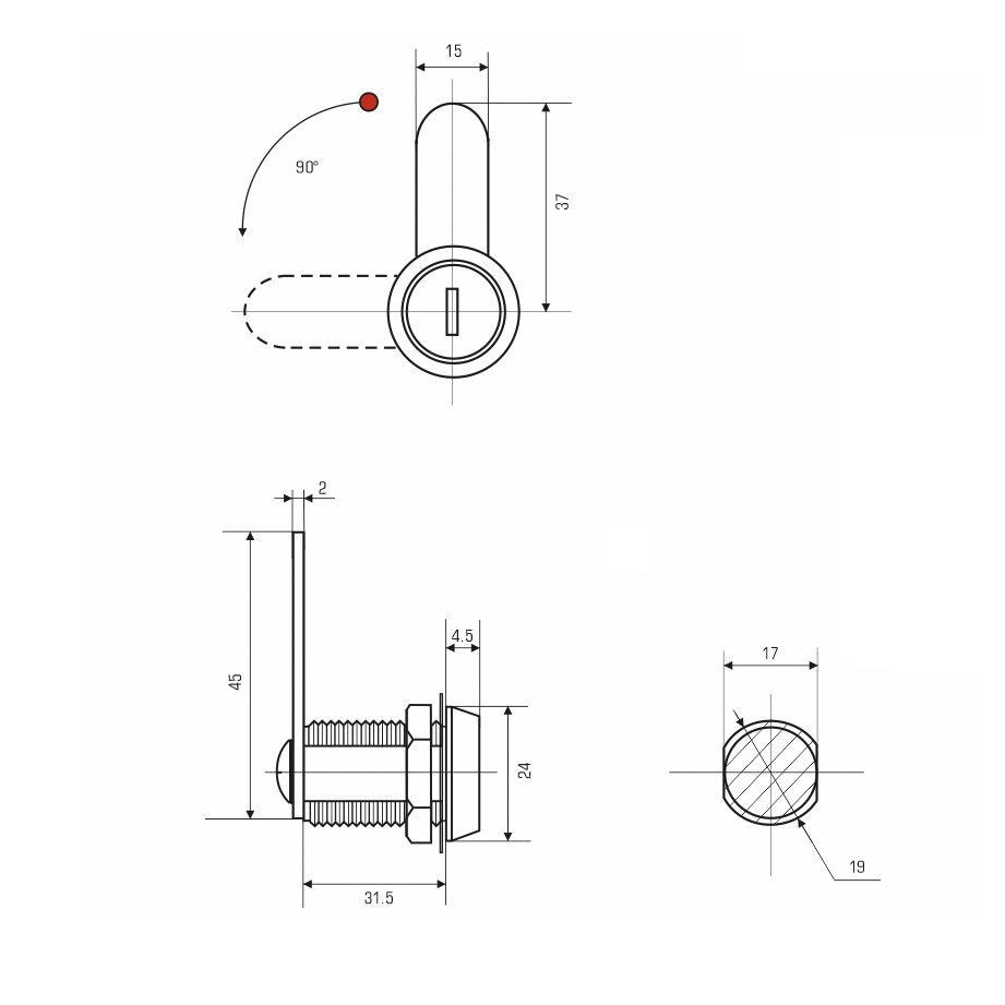 Длинна ригеля от центра замка: 37 мм