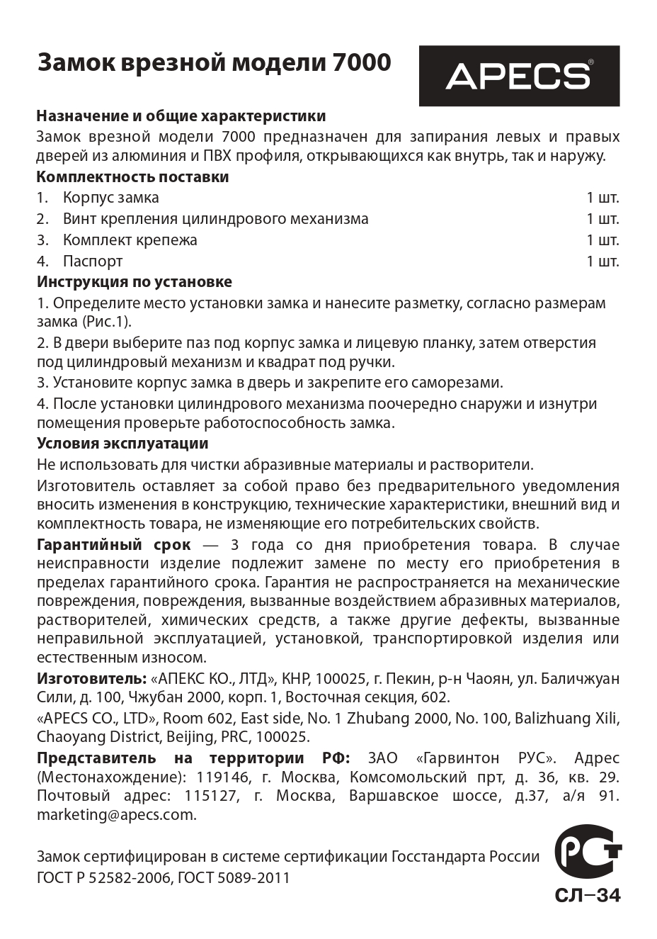 Замки имеют сертификат соответствия согласно ГОСТ 5089-2011.