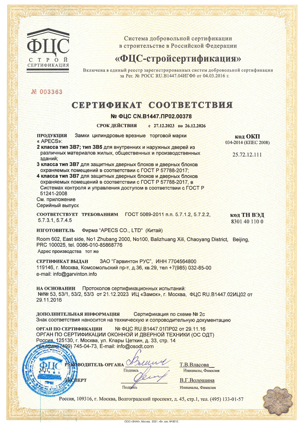 Замки имеют сертификат соответствия согласно ГОСТ 5089-2011.
