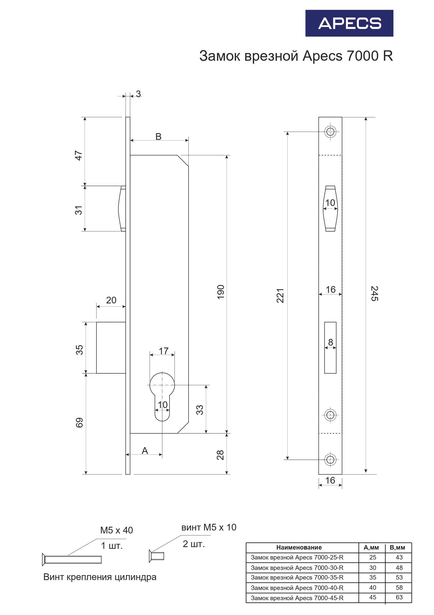 ЗВ Апекс 7000-40-R-Ni замок врезной (30)