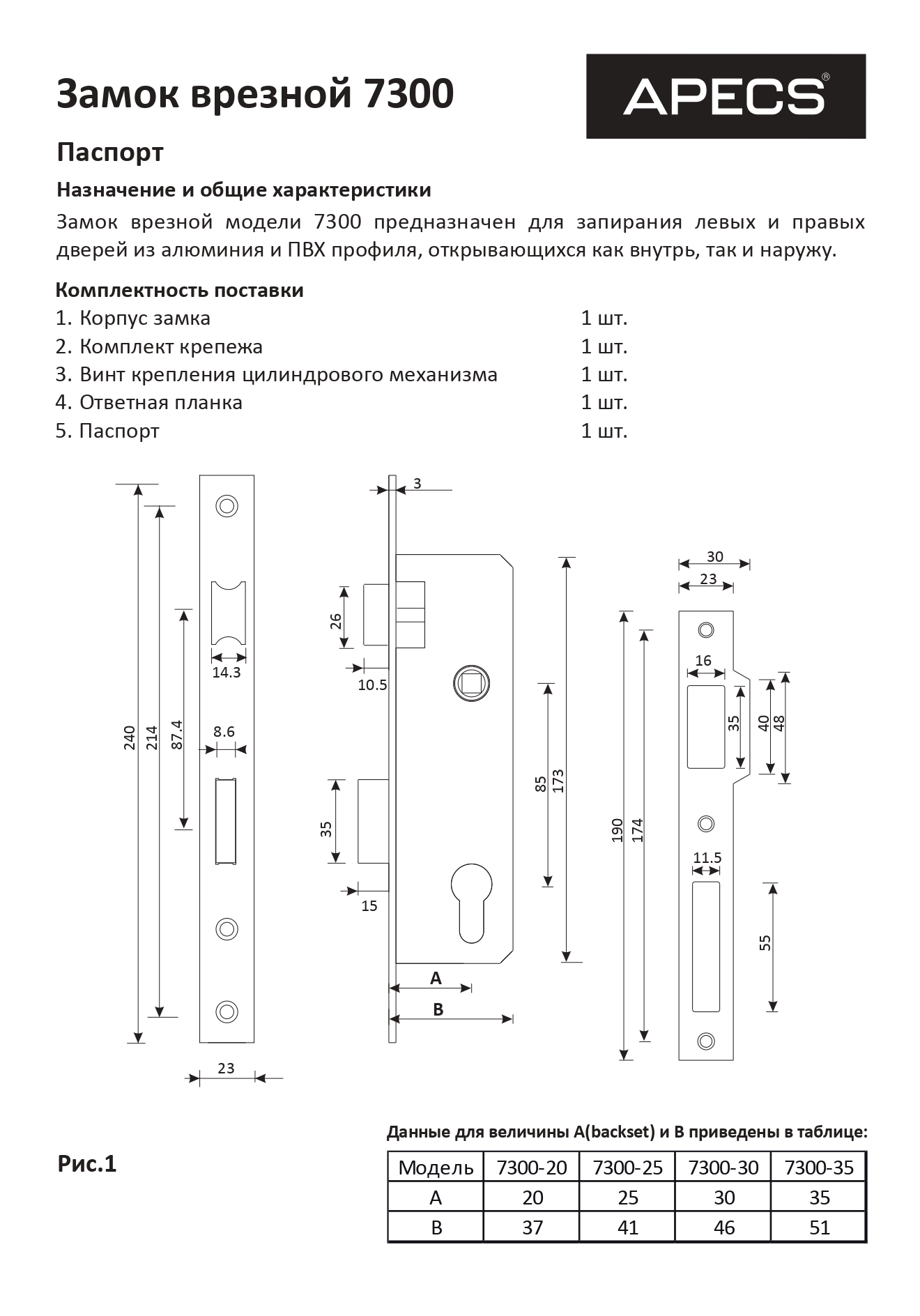 ЗВ Апекс 7300-30-NIS замок врезной (30)