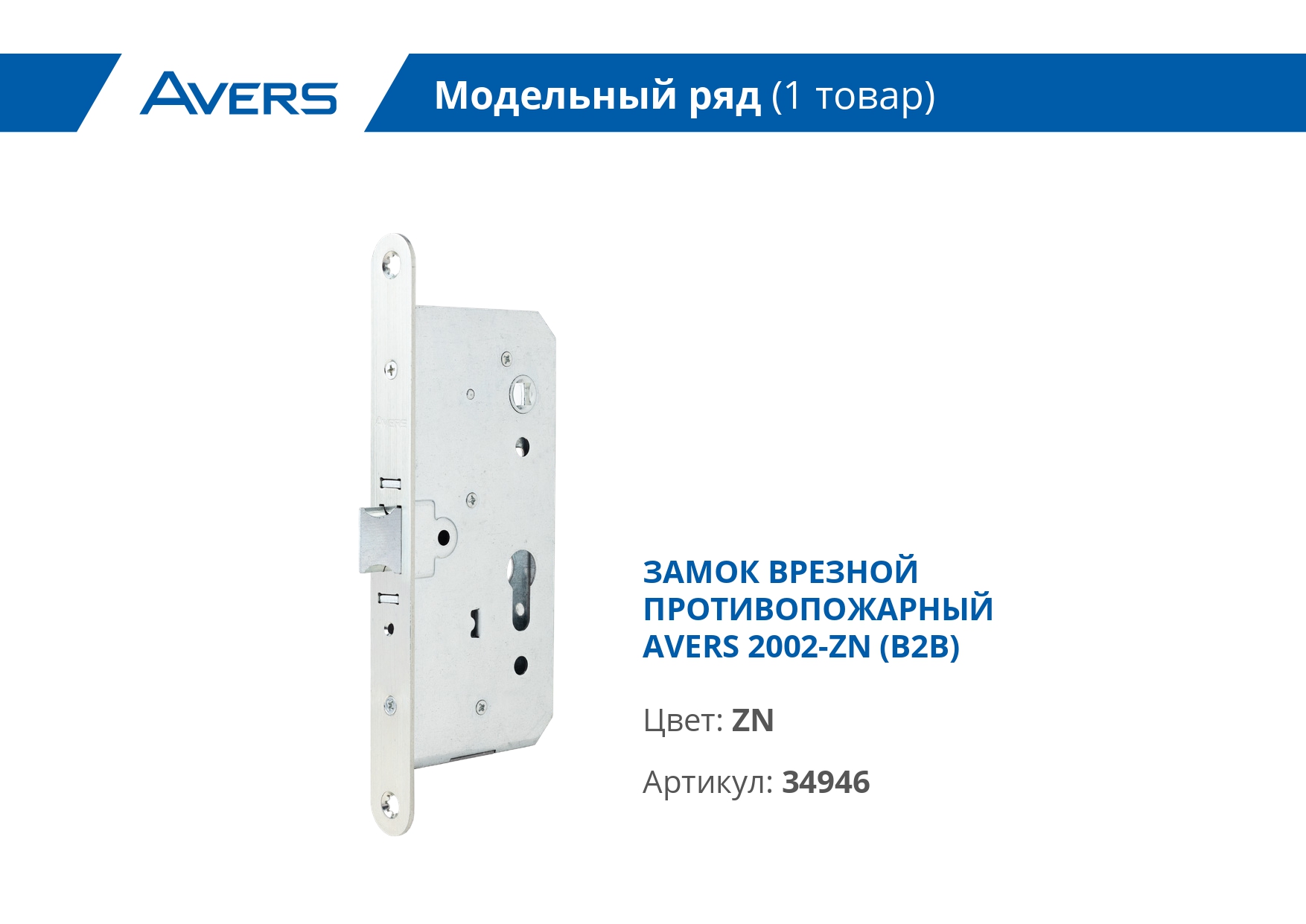 Замок врезной противопожарный Avers 2002-ZN универсальный (B2B) (24)