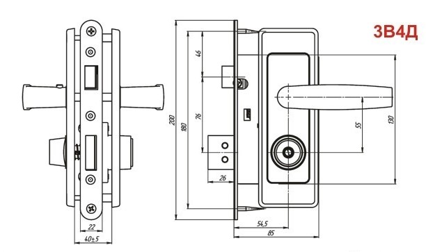 Замок врезной Барановичи ШО-25 с ручками ЗВ4Д