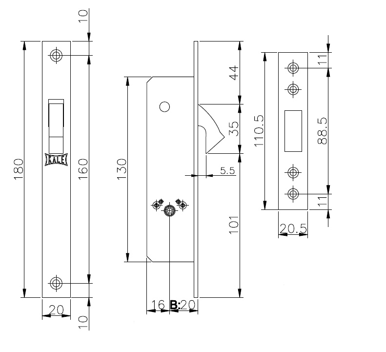 Замок врезной Kale 201 F (20мм) крестообразный ключ 3кл. (Турция)