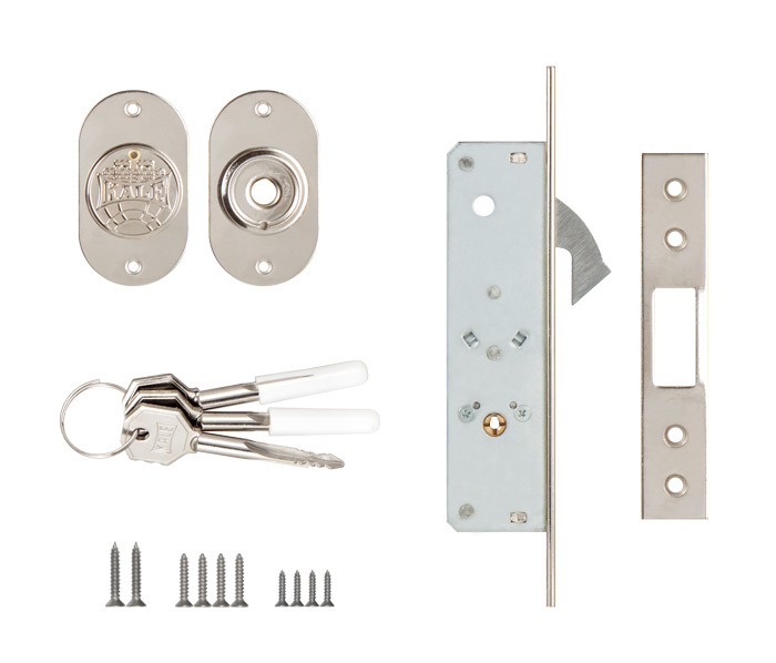 Замок врезной 201F с выпадающим ригелем и крестообразным ключом предназначен для скользящих узкопрофильных дверей. Корпус выполнен из оцинкованной стали, ригель из никелированного цинкового сплава. Ширина планки - 20 мм. Бэксет - 20 мм. Цвет: никель. В комплекте 3 ключа.