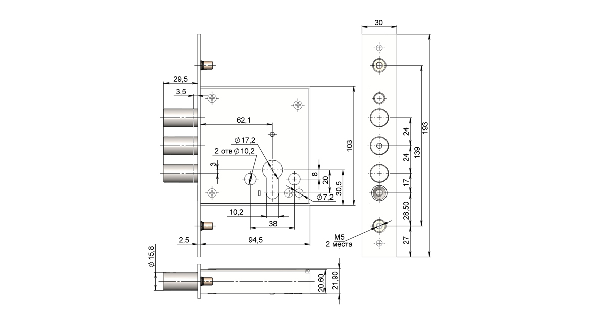 На место модели ЗВ-А1 можно установить сувальдный замок ЗВ-А10 либо ЗВ-А11. Все отверстия для монтажа и центра ключевин полностью совпадут.