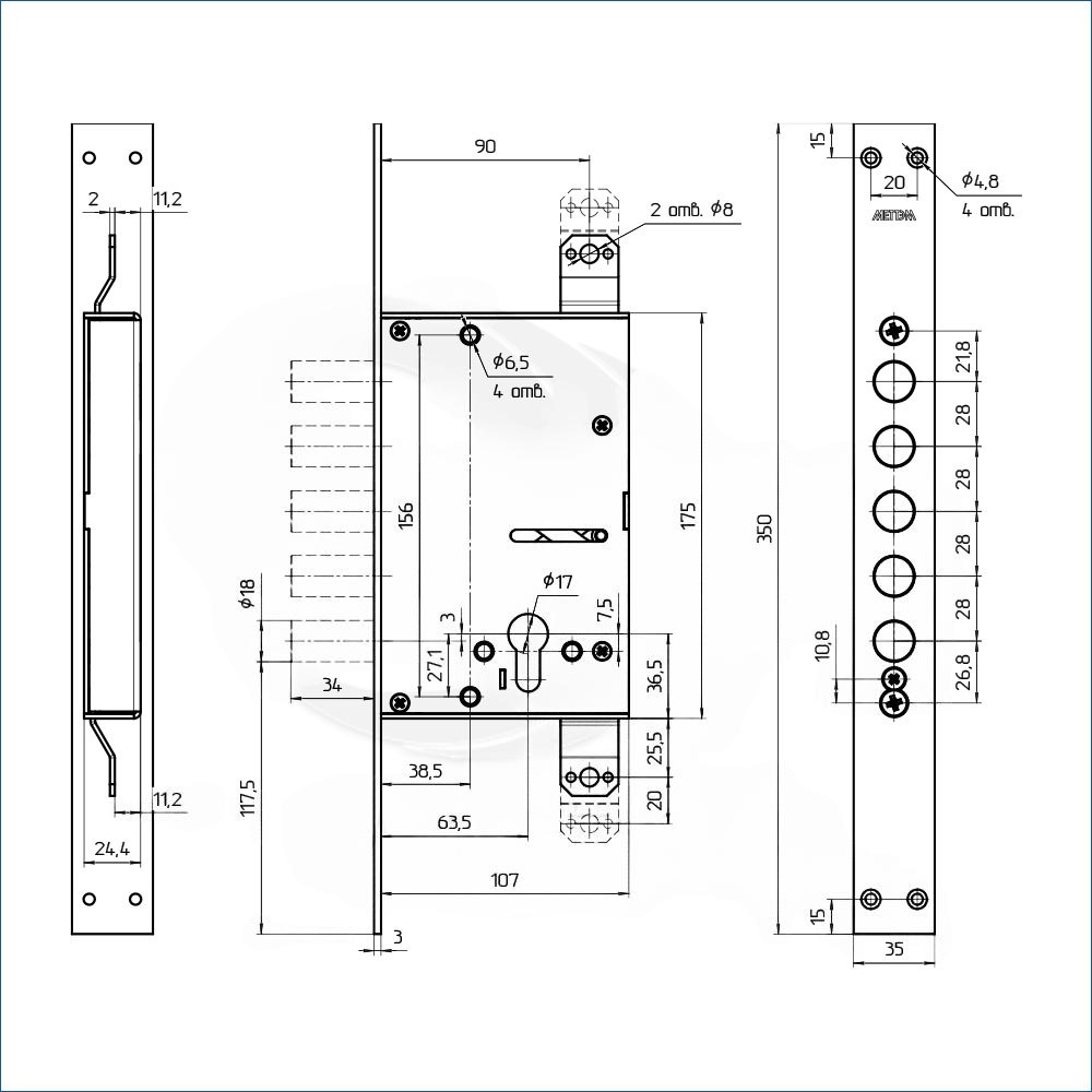 Замок врезной МЕТТЭМ под ЦМ ЗВ1 312.Т-П