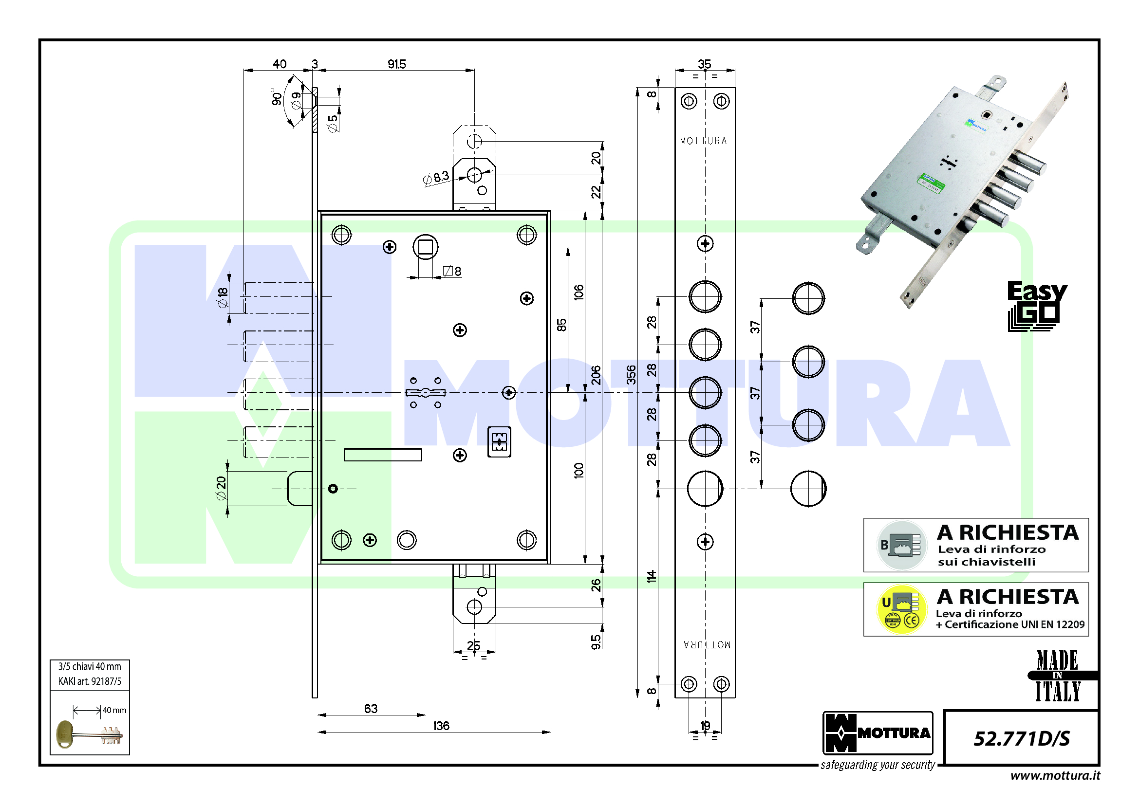 Замок врезной MOTTURA 52.771 TSBM 54 (Италия)